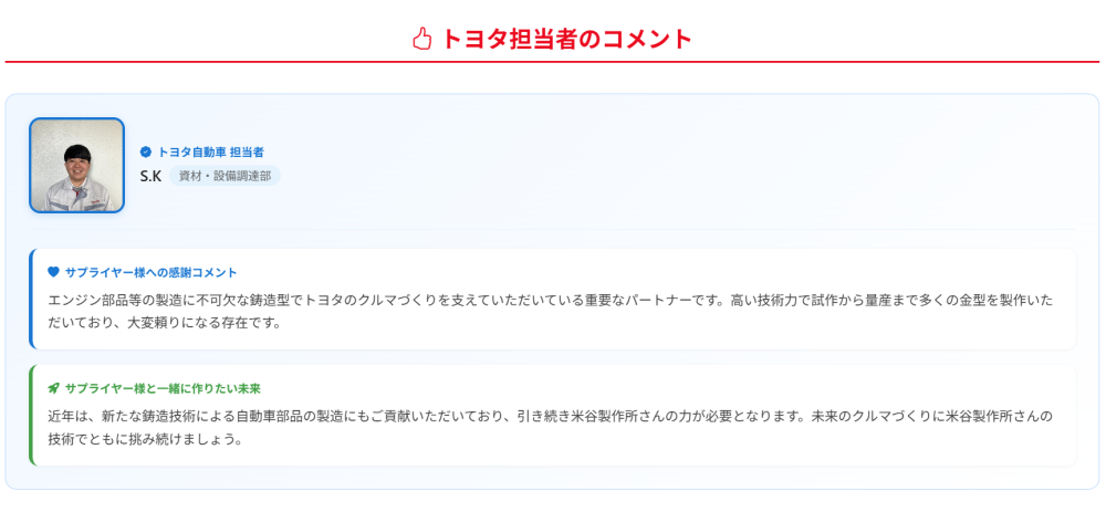 当社はトヨタ自動車のものづくりを支えるサプライヤー企業です。